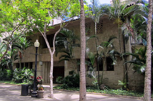Across from the Cathedral of Our Lady of Peace at the mauka end of the Mall, the Hawaii Pacific University presence gives the Mall a college feel. Students periodically fill the Mall when classes let out and they stroll to one of the many buildings that HPU occupies on the Mall.