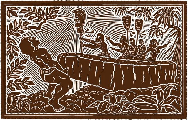 When Kamehameha gripped the stone and leaned over it, he leaned, great strength came into him, and he struggled yet more fiercely, so that the blood burst from his eyes and from the tips of his fingers, and the earth trembled with the might of his struggling, so that they who stood by believed that an earthquake came to his assistance. (NPS)
