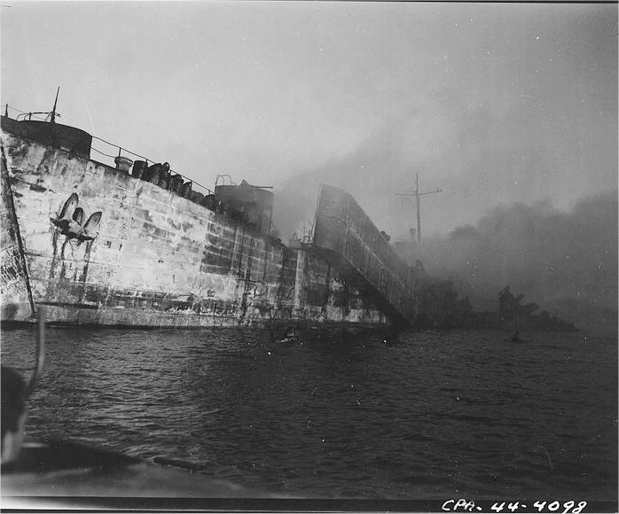 Several investigations sought to find the reason for such a disaster, but no conclusive evidence as how it occurred was decided upon. Two major causes emerged as most likely: Either a fused mortar round was accidently dropped while unloading the LCT aboard LST-353, or the initial explosion was caused by gasoline vapors. (Oliver)
